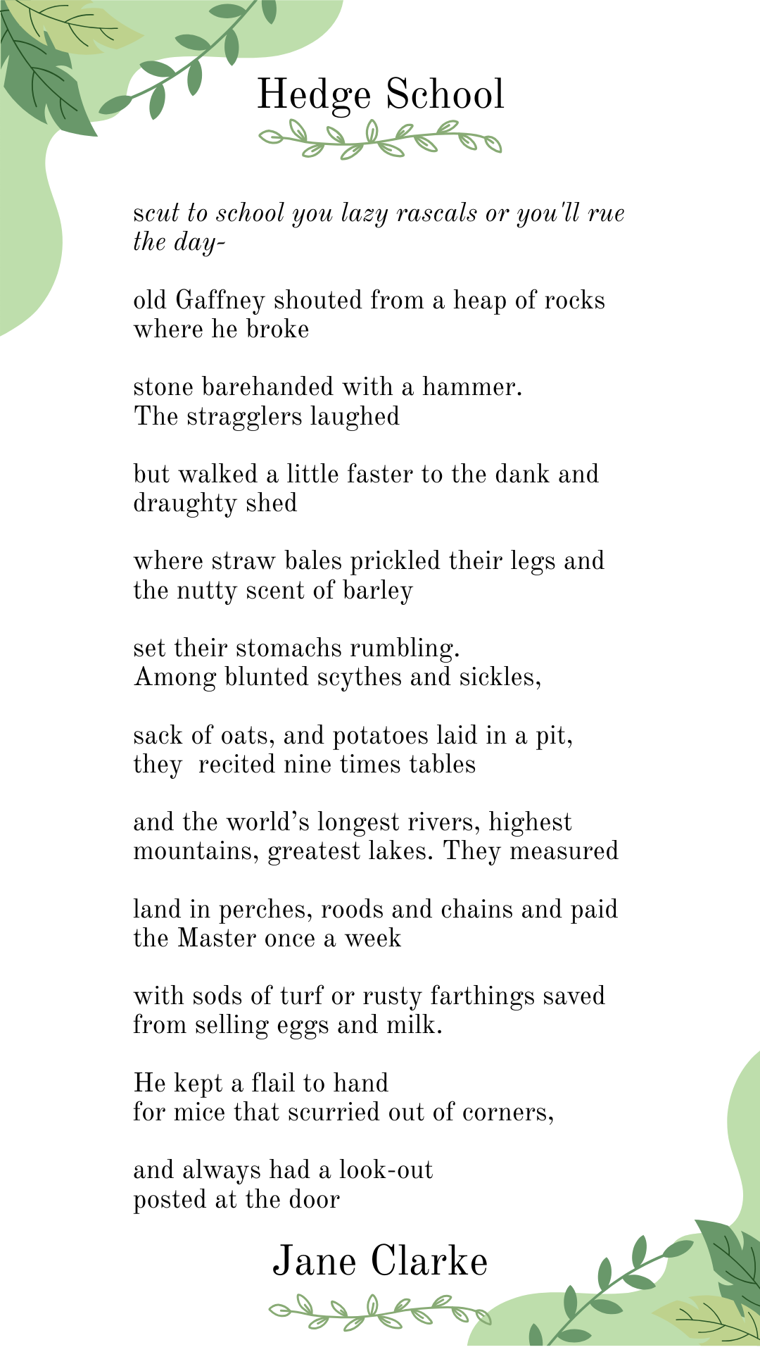 Click the play button below to listen to a reading of the poem from Jane Clarke.